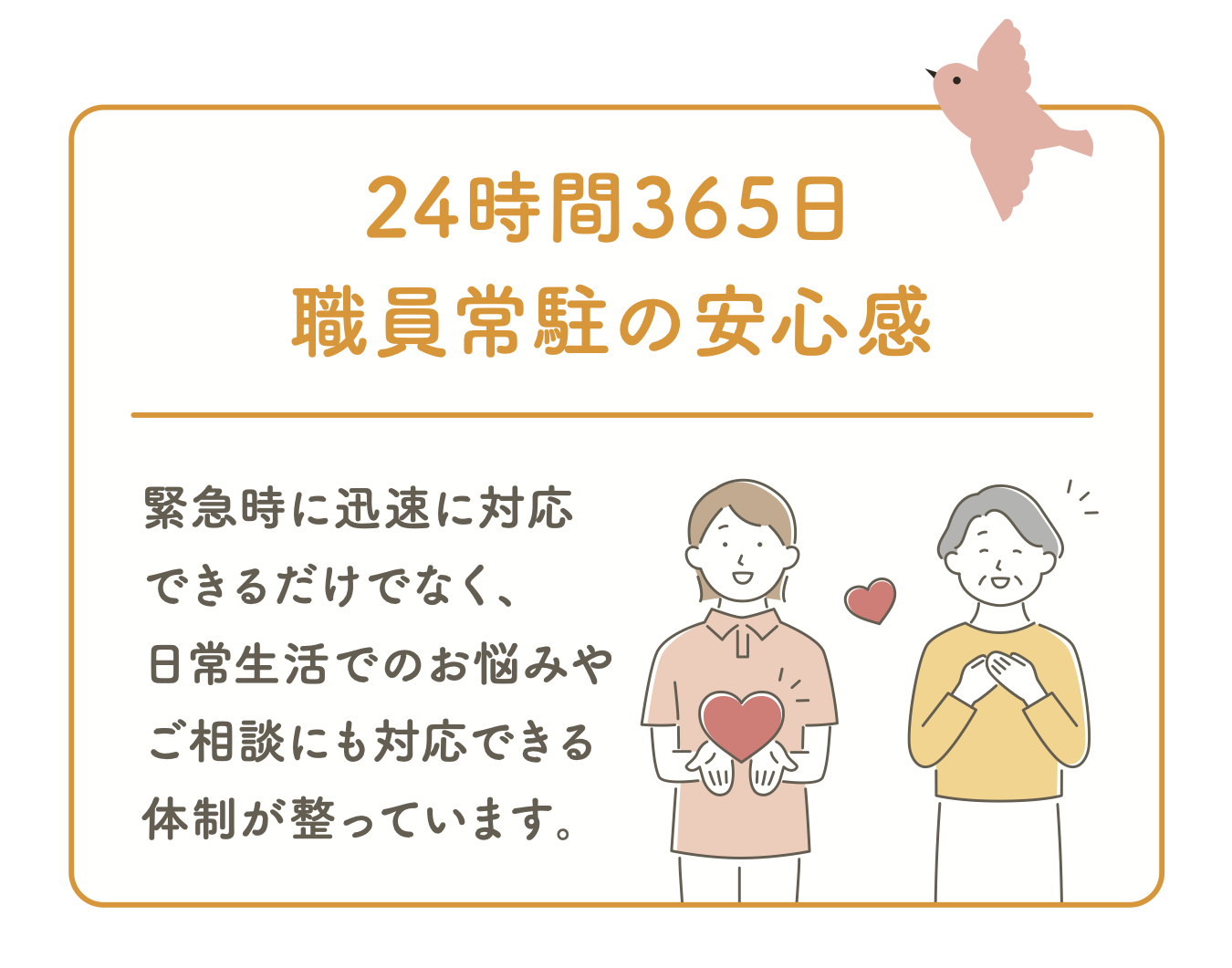 緊急時に迅速に対応できるだけでなく、日常生活でのお悩みやご相談にも対応できる体制が整っています。